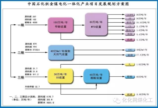 中石化织金金60万吨/年煤制烯烃项目2017年2月环评获国家环保部批复,项目以贵州当地无烟煤为原料,采用粉煤气气技术和S-MTO技术生产烯烃,工程建设内容主要包括新建180万吨/年甲醇装置、180万吨/年甲醇制烯烃装置、30万吨/年线性低密度聚乙烯和30万吨/年聚丙烯生产装置,以及相配套公用工程及辅助设施。项目总投资约167.7亿元。