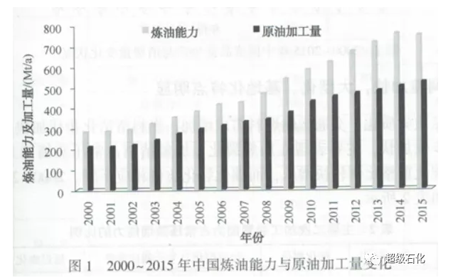 进入21世纪以来,中国炼油工业得到了快速发展。国内炼油能力从2000年的280Mt/a增至2015年的750Mt/a,年均增长率6.7%,成为仅次于美国的全球第二大炼油国,也是同期全球炼油能力增长最快的国家。
