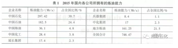 截至2015年年底,中国已拥有千万吨级炼28座,合计炼油能力364Mt/a,约占全国炼油能力48.6%,其中,中国石化值海炼化分公司、中国石化茂名分公司、中国石化金陵分公司和中国石油大连石化炼油规模均已超过20Mt/a。