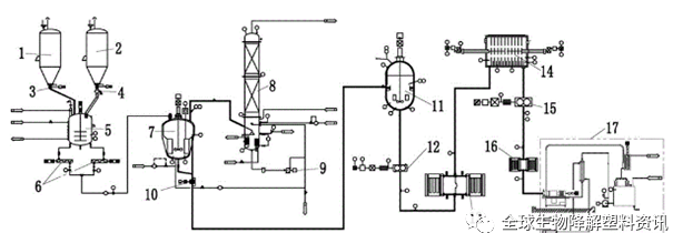 扬州普立特科技发展有限公司成功开发出一种全连续PBAT的生产工艺,其流程图如下图所示。2020年5月,普立特工程研发中心与工程部共同实施的PBAT合成新工艺获得验证。