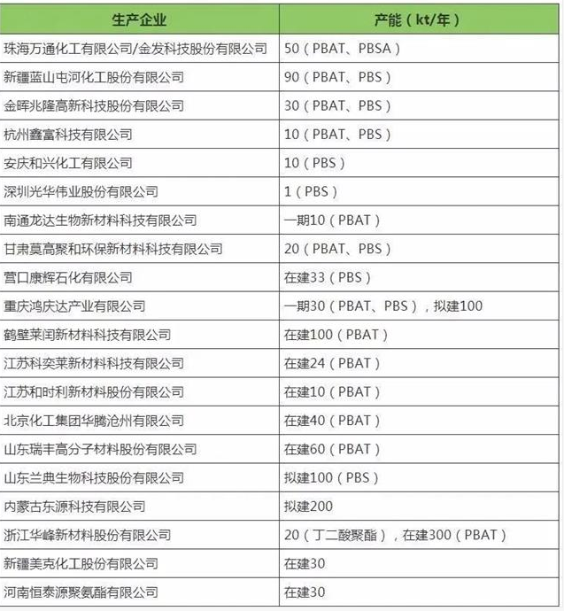 那么,在现阶段,哪些中国企业在布局可降解塑料生产线,并且正处于产能快速扩张过程中?