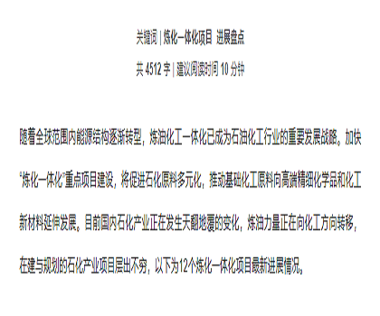 • 12个大炼化一体项目最新进展大盘点