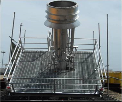 海上平台火炬是一种专门用于海上钻井平台的火炬,其抗风能力达到12级,采用空气增压涡流配风消烟技术实现无烟燃烧,长明灯具有极强的抵御恶劣海洋性气候如抗风、抗雨能力。